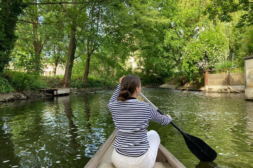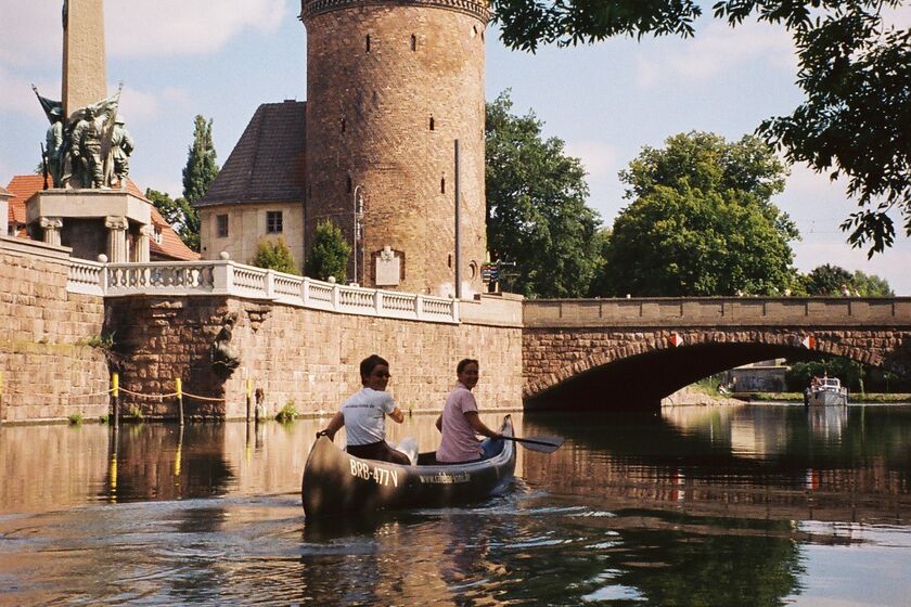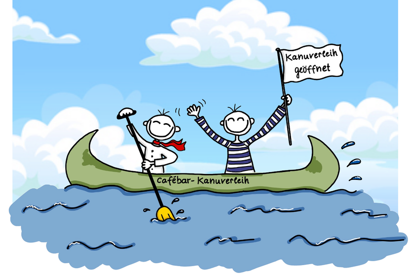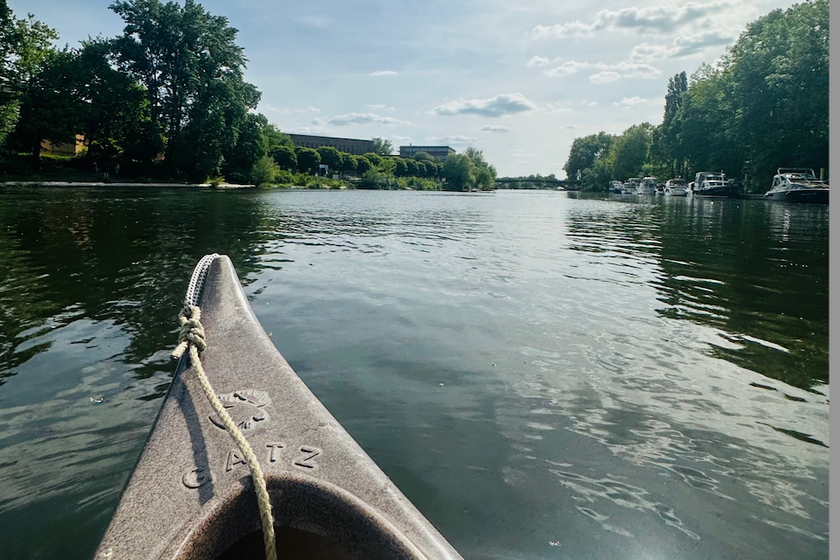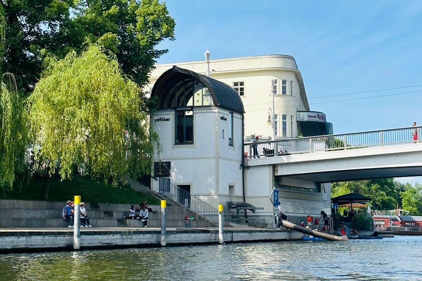 Die Cafébar mit Kanuverleih befindet sich mitten im Zentrum der Stadt an der Jahrtausendbrücke.