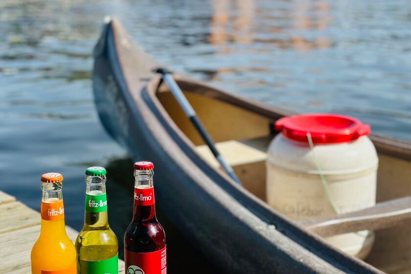 Oben in der Cafébar (übrigens eines der kleinsten Cafés in Brandenburg) gibt es leckere Köstlichkeiten rund um das Thema Kaffee sowie gemütliche Innenplätze, draußen eine Liegewiese und Sitzstufen mit Blick aufs Wasser und unten am Ufer der Havel liegen vier Kanus zum Ausleihen bereit.