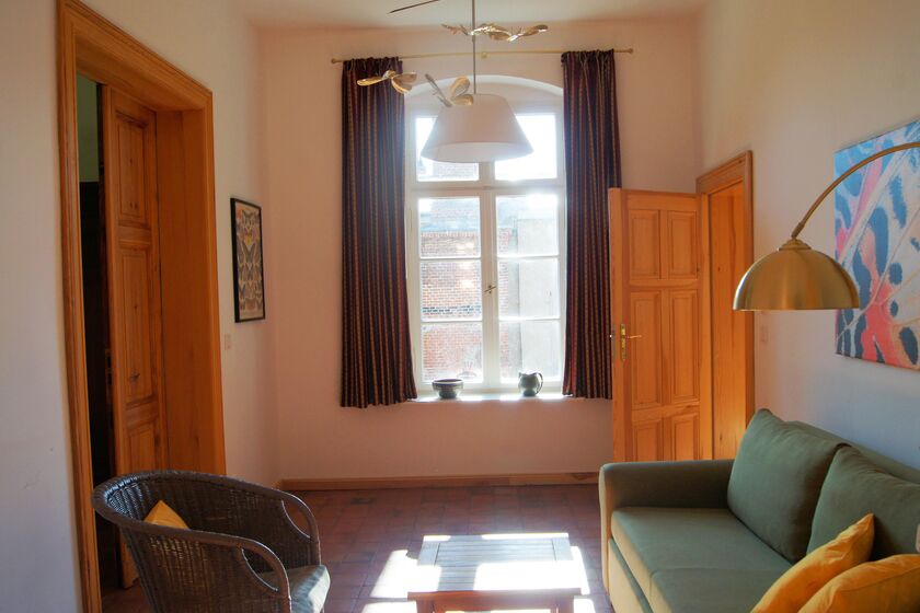 Die Ferienwohnung für maximal 5 Personen (ca. 110 qm) befindet sich im 1. Stock des denkmalgeschützten Kunstgut Krahne (dem ehemaligen Gutshaus in Krahne).