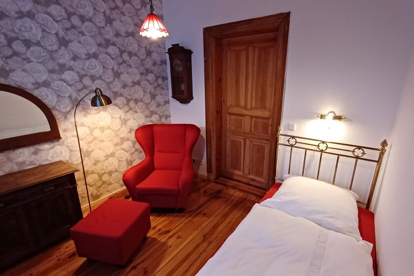 Die Ferienwohnung für 1 bis maximal 2 Personen (ca. 25qm) befindet sich im denkmalgeschützten Kunstgut Krahne (dem ehemaligen Gutshaus in Krahne).