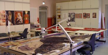 Das Brandenburger Hungertuch wurde gegen Ende des 13. Jh. in Seide und Leinen auf ein Leinentuch gestickt. Auf etwa 9 m² erzählt es die ganze Lebensgeschichte. Die zentrale Darstellung zeigt die Kreuzigung Christi.