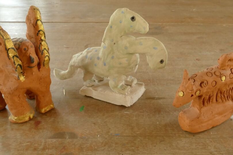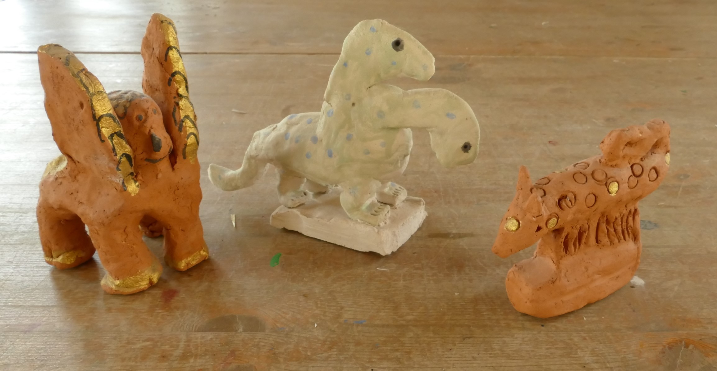 Wir gestalten Wesen, die aus Fabeln bekannt sind - oder auch noch ganz unbekannt? Selbst entworfene Figuren aus der Phantasie- und Fabelwelt werden in Ton modelliert und mit Engoben farbig gestaltet. Vielleicht finden auch alle Kinder ein gemeinsames Thema, dann können richtige Geschichten ins Rollen kommen … unter den Gestalten.