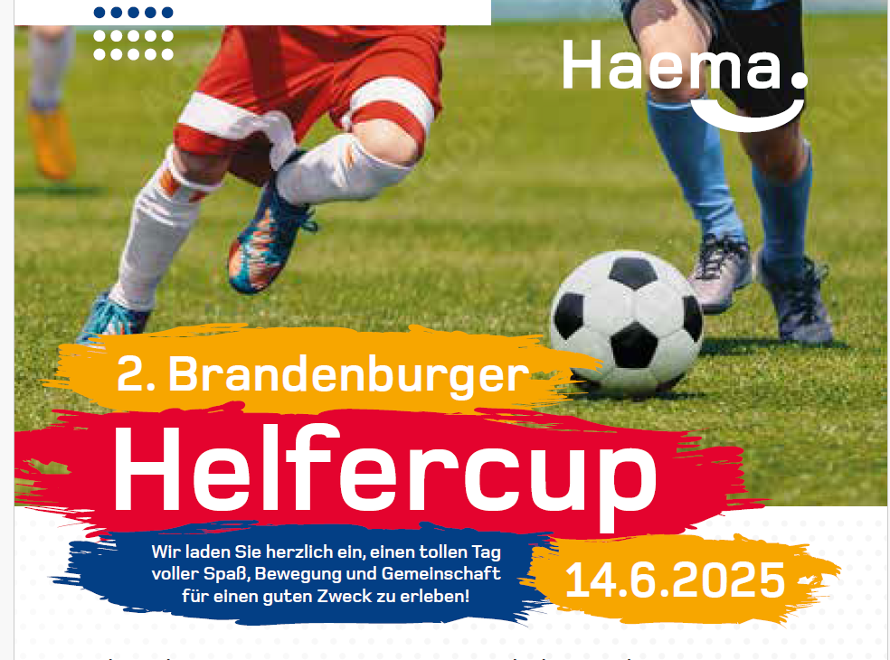 Heute lädt die Haema GmbH – Blut- und Plasmaspendedienst in Brandenburg an der Havel – zum 2. Brandenburger Helfercup ein: einem Fußballturnier mit großem Familienfest auf dem Sportplatz des SV Empor Brandenburg.