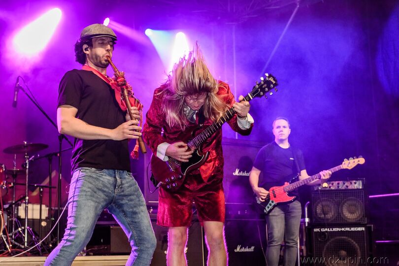 Im Repertoire der tschechischen Hard Rocker sind alle wichtigen Knaller wie „TNT“, „Thunderstruck“, „Dirty deeds done dirt cheap“ oder „Back in black“. Showtechnisch gibt es neben besagter Glocke einiges zu sehen und neben „Angus“ und „Brian“ glänzt auch der Rest mit präzisem Background-Gesang, Rhythmusgitarre, Drum- und Bassspiel. Mit dieser Band steht garantiert jedes Konzert unter Strom!
