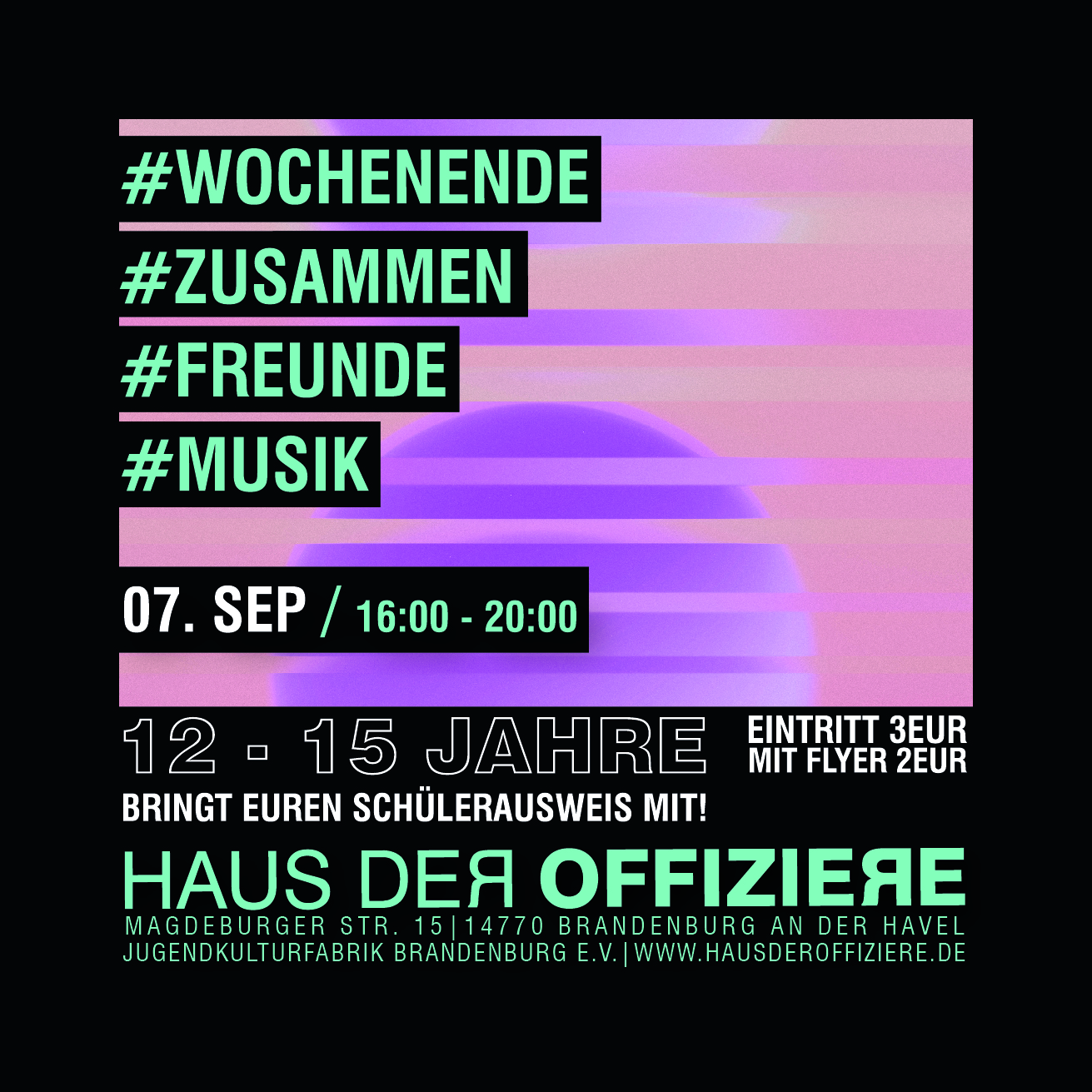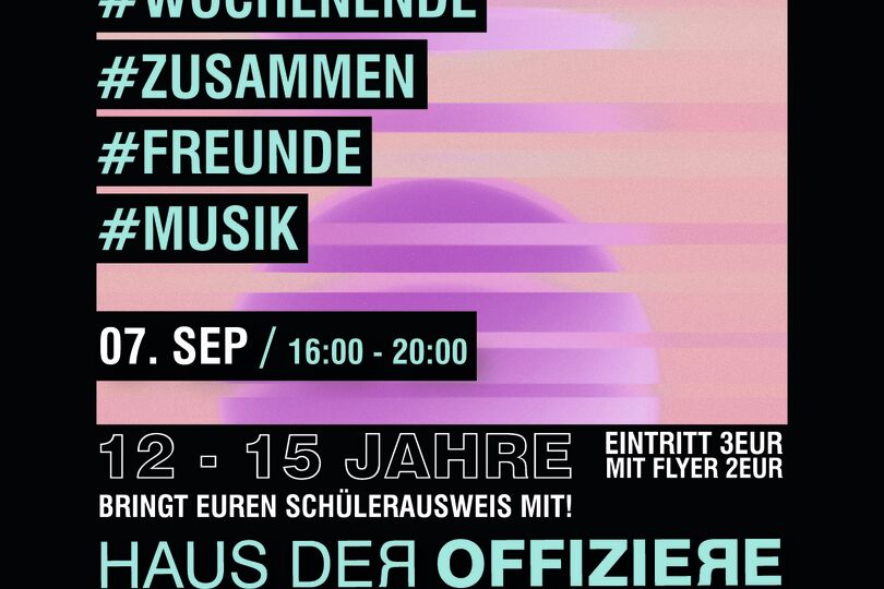 Kommt mit euren Leuten vorbei und feiert zu den neusten Hits aus den Charts und den besten TikTok Songs. Vergesst den Schulstress – was jetzt zählt, ist das Wochenende und die Zeit mit euren Friends. Packt euren Schülerausweis ein und ab geht es ins Haus der Offiziere.