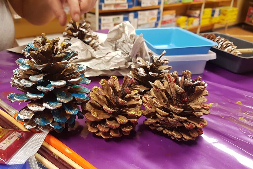Heute basteln wir mit Kindern ab 3 Jahren Weihnachtskarten, Anhänger und weitere tolle Dekorationen für das Weihnachtsfest.