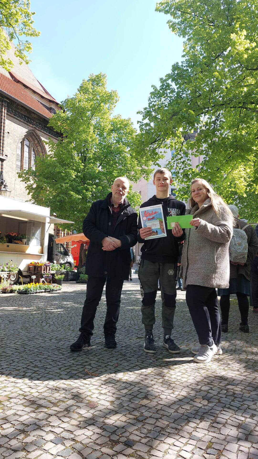 Am vergangenen Freitag wurde der Künstler des neuen Plakats für den Frische Wochenmarkt von der Marktleitung ausgezeichnet. Außerdem wurde uns ein Preisgeld zur freien Verwendung überreicht. Unser Dank gilt der Schulleitung der Johannes-Pestalozzi-Schule, die diesen Wettbewerb im Rahmen des Unterrichts durchgeführt hat.