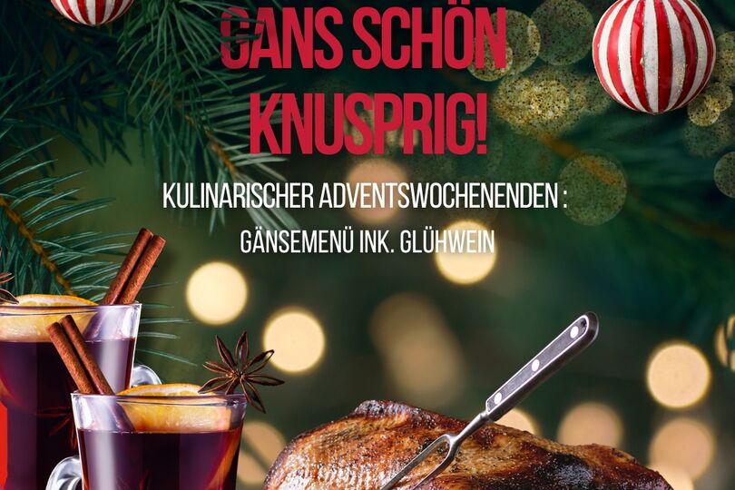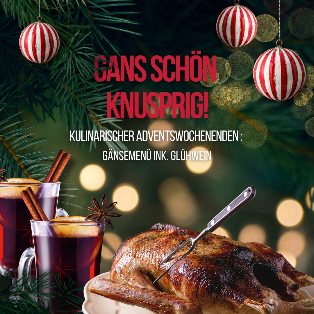 An den 4 Adventswochenden ab 12 Uhr laden wir euch herzlich ein, ein festliches 3-Gang-Weihnachtsmenü bei uns zu genießen, inklusive einem wärmenden Glühwein! Lasst euch von uns kulinarisch in Weihnachtsstimmung bringen und genießt die besinnliche Zeit in unserer gemütlichen Atmosphäre. Die Plätze sind begrenzt – reserviert schnell euren Tisch und freut euch auf weihnachtliche Genüsse!
