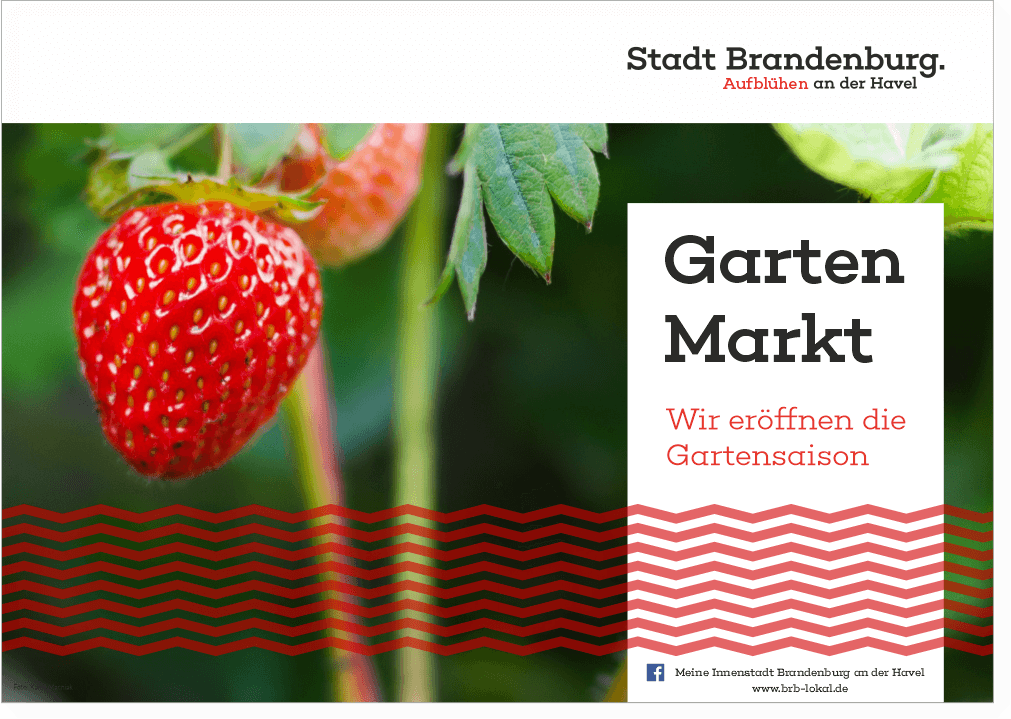 Beim Gartenmarkt präsentieren Fachbetriebe aus der Havelstadt und der Umgebung Klassiker ebenso wie Neuheiten und Trends. Dazu geben die Gärtner, Floristen und Landschaftsgestalter viele Tipps zu Auswahl und Pflege. Stände mit Gartengeräten und -utensilien, Kunsthandwerk und Kulinarischem aus der Region ergänzen das Angebot. Der Markt auf der Fläche zwischen dem Neustädtischen und dem Molkenmarkt ist an beiden Tagen von 10 bis 18 Uhr geöffnet.