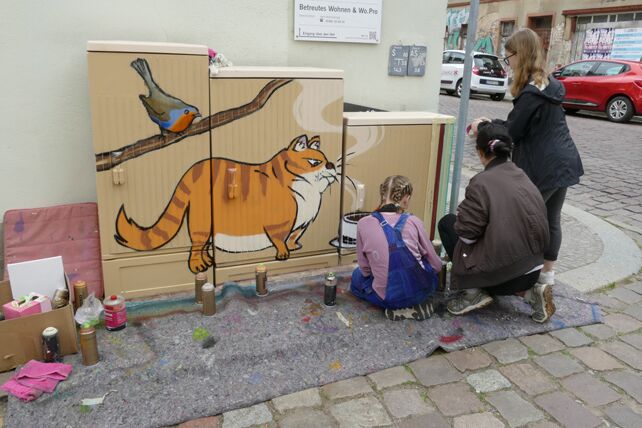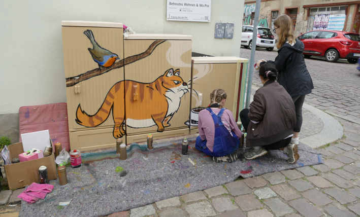 Guido Raddatz und Janine Wentorf werden mit Euch gemeinsam Stromverteilerkästen in Brandenburg an der Havel gestalten. Ihr macht Entwürfe, legt Schablonen an und "malt" mit der Dose.