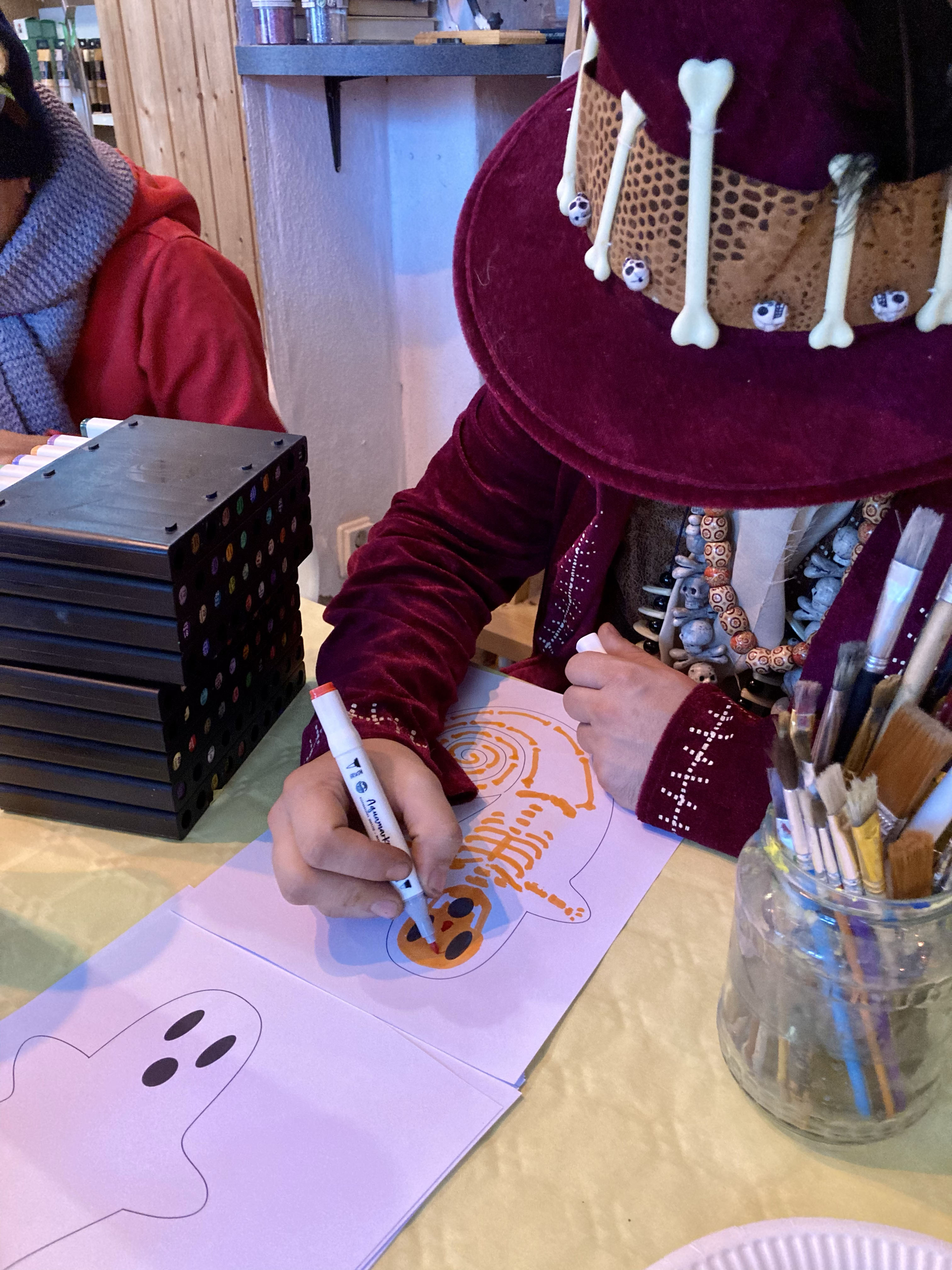 Bastelt und malt im Atelier Geister, Monster und Fledermäuse. Dazu gibt es ein gruseliges Unterhaltungsprogramm und die ein oder andere Mutprobe.