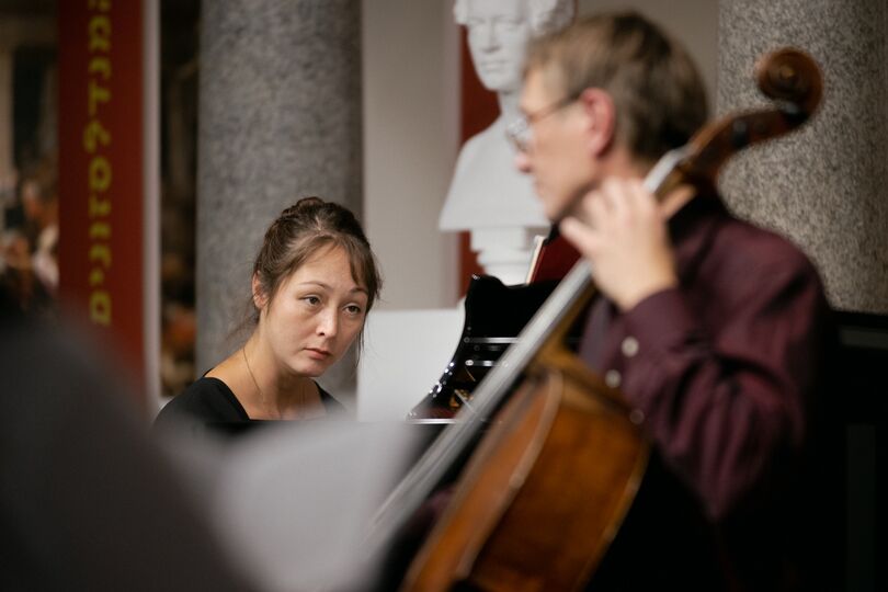 Die Cembalistin Mira Lange und der Cellist Martin Seemann spielen als Ensemble "Wunderkammer petite" im Rahmen der Sommermusiken am Dom Werke von L. van Beethoven, F. Mendelssohn-Bartholdy, F. Hensel und M. Th. Paradis.