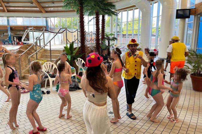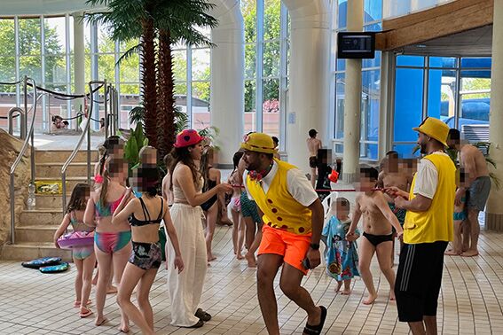 Feiere mit uns die ultimative Kinderparty im Marienbad Brandenburg mit der Kinder-Party-World aus Berlin und Marienbad-Maskottchen Balli.