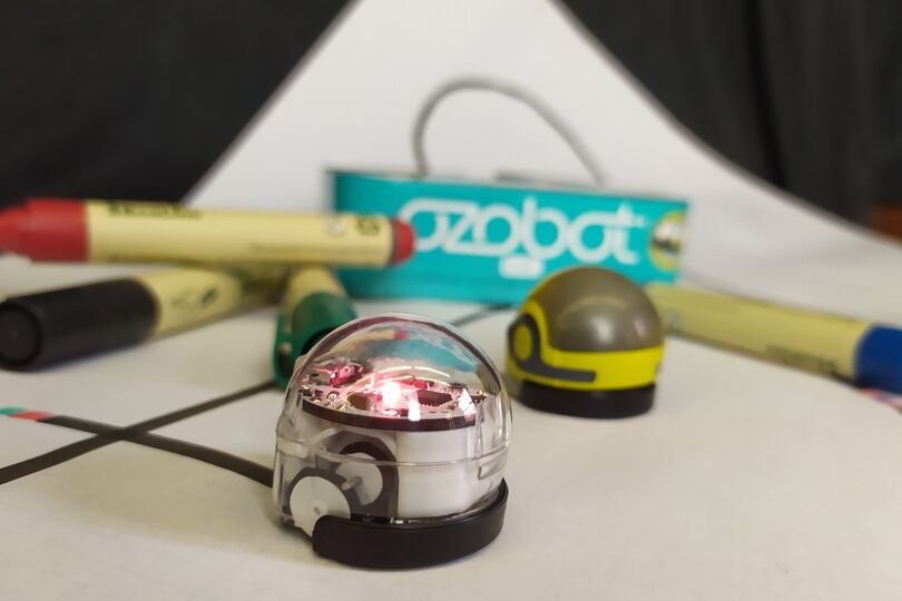 Zum Einstieg in die Welt der Robotik können die Kinder Linien mit den Stiften auf Papier malen, diese erkennt der Ozobot und folgt ihnen. So entsteht aus verschiedenen Farbcodes ein richtiges Labyrinth, welches der kleine Lernroboter meistert und die Kinder erwerben ein Grundverständnis des Programmierens.