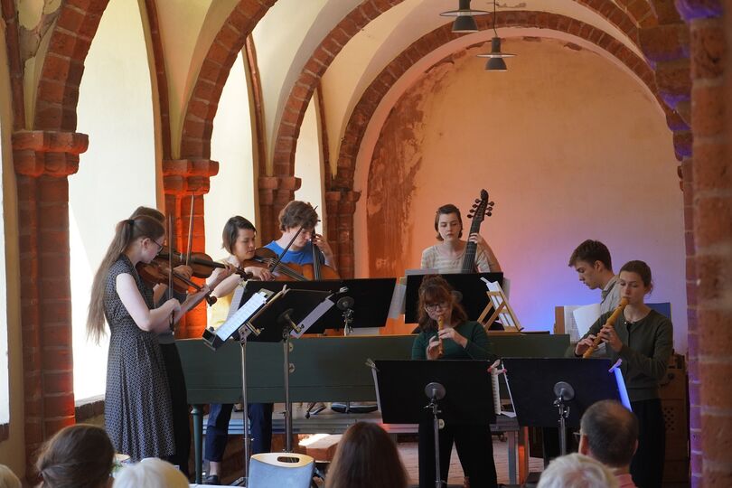 Im sogenannten „Broken“ oder „English Consort“ begegnen sich Instrumente unterschiedlicher Instrumentenfamilien. Beim Konzert am 30. August bringen junge Musikerinnen und Musiker einen reizvollen Dialog zwischen Saiten- und Blasinstrumenten zum Klingen und entfalten dabei eine faszinierende Klangvielfalt und kreative Ausdruckskraft. Der stimmungsvolle Abend im Kreuzgang der Klosterkirche Lehnin widmet sich unterhaltsamer Musik aus England – so, wie sie in der Spätrenaissance und im Frühbarock, etwa am Hof von Elisabeth I., zu hören war.