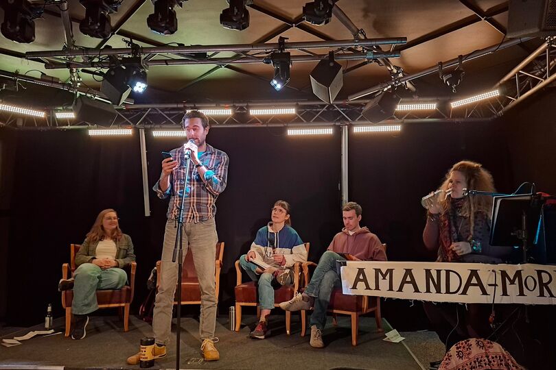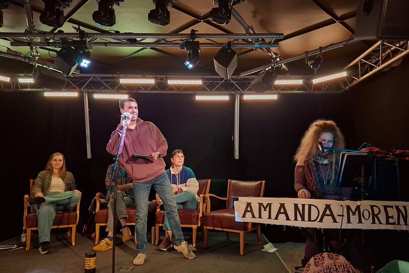 Mit den jungen Poetinnen und Poeten Romy Kachel, Swantje Kautz, Nicolai Raab und Paride Ramazzina.