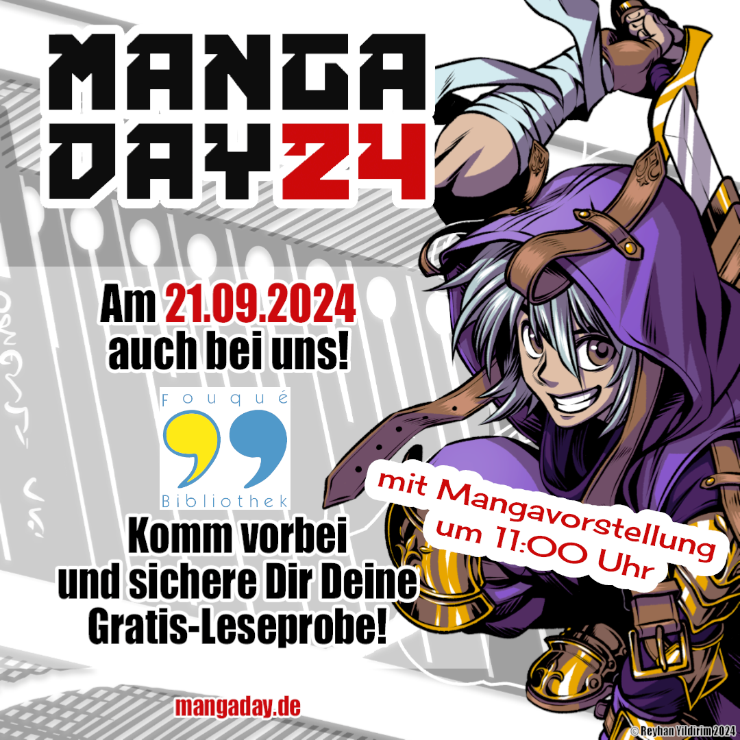 Zum zweiten Mal laden wir zum Manga Day ein. Der Manga Day ist ein bundesweites Event, an dem über 1300 Buchhandlungen und Bibliotheken im deutschsprachigen Raum teilnehmen. Du kannst dir Gratis-Hefte sichern, sowohl in der Kinder- als auch in der Jugendbibliothek. Dank der Zusammenarbeit mit namhaften Verlagen erwartet dich ein Mix aus etablierten Serien und aktuellen Neuheiten, die quer durch die Genres von Fantasy über Action bis hin zu Romance und Mystery reichen. Und mehr noch: Das Bibliotheksteam hat sich wieder kniffelige Fragen für ein Quiz einfallen lassen und setzt die Buttonmaschine in Gang. Du kannst dir Manga-Button gestalten und mit nach Hause nehmen. Um 11:00 Uhr findet die Mangavorstellung in der Kinderbibliothek statt. Du hast eine Lieblings-Charaktere und schlüpfst gerne in ihre Rolle? Alle sind herzlich eingeladen, ihren favorisierten Style zu präsentieren. Einige Cosplayer haben sich schon angekündigt.
