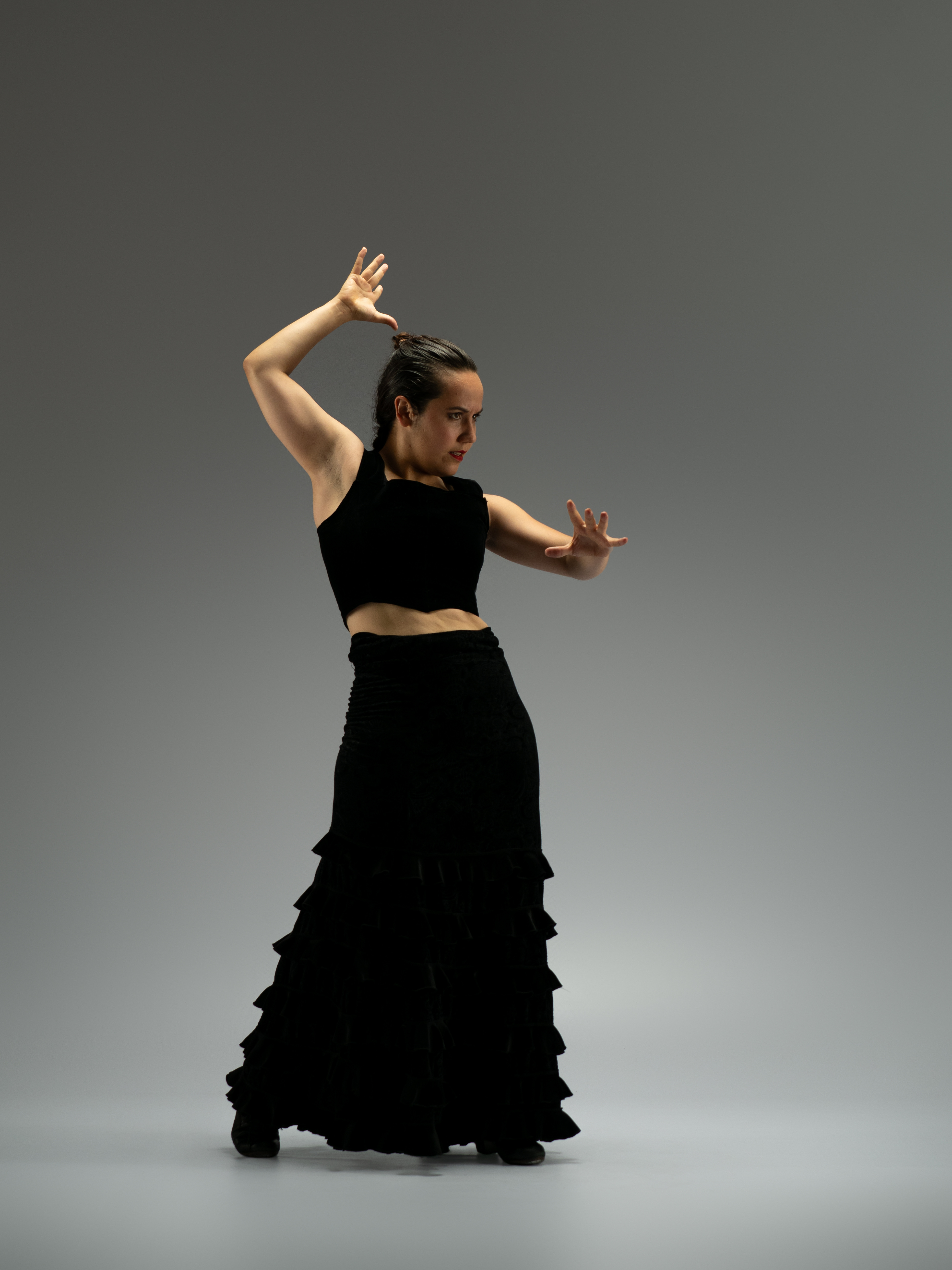 2022 she completed her Bachelor in social and political Scienes at HU Berlin.She also become a member of Alba Alsina Quintet dancing at this yearsBarcelona Jazz Festivals presenting a fuision project between Flamenco and Jazz composition. Anna Castillo works on the combination between flamenco technique andcontemporary methods and dance, which manifests itself in her dance. Her research includes the practice of traditional Flamenco Palos, theirimprovisations rules and relationships with life musicians (Tablao), but alsonourishes itself deeply by contemporary view on dance, breakingstereotypical views on Flamenco. She is currently based in Berlin as a Freelancer, working as fix member ofCampus Company by Tanzzeit and teaching at CentroFlamencoBerlin.