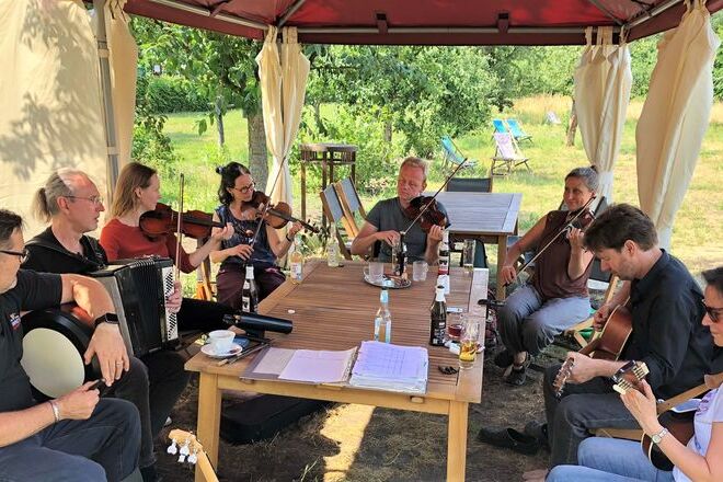 Geige, Banjo, Akkordeon, Dudelsack, Bodhrán (irische Rahmentrommel) – man sitzt musizierend am Tisch während das Publikum gemütlich Guinness, Whiskey oder Tee trinkt. Neuigkeiten werden ausgetauscht. Plötzlich wird es still, weil ein Lied angestimmt wird. Die Potsdamer Session spielt seit Herbst 2002 regelmäßig in Potsdam und Umgebung, immer von Musikern, die sich intensiv mit der irischen Musik beschäftigt haben und sie authentisch zum Klingen bringen.