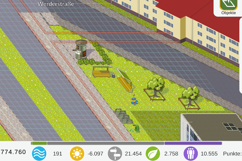 Seien Sie selbst Stadtplanerin oder Stadtplaner: Testen Sie spielerisch verschiedene Klimaanpassungsmaßnahmen und entdecken Sie, wie sie sich auf die Umgebung auswirken. Ob artenreiche Beete, nachhaltige Mobilität oder innovative Wasserbewirtschaftung – Ihre Ideen sind gefragt!
