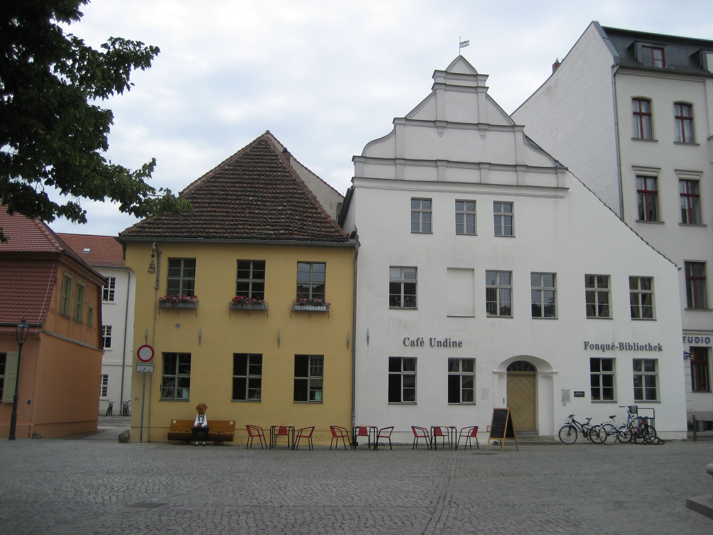Stöbern, entdecken, ausleihen: Im Baukulturbücherregal finden Sie Spannendes über Architektur, Stadtentwicklung und Klima. Jetzt reinschauen, Baukultur neu entdecken und auf Wanderung gehen. Die Fouqué-Bibliothek ist mit dem Einzug ins Syndikats- und Sekretariatshaus zu einem bemerkenswerten Original lebender Baukultur und unterhaltender Wissensvermittlung geworden. Auf drei Geschosse verteilt, ist die Bibliothek frei zugänglich und bietet ein umfangreiches Veranstaltungsangebot. Der sanierte, von jugendlichen Graffiti-Künstlern gestaltete, Innenhof ergänzt das alte Haus und ein guter Kaffee unterstreicht den erholsamen Aufenthalt. Die Zweigstelle der Bibliothek im Stadtteil Hohenstücken hat eine Stadtteilrallye entwickelt. Kinder aus dem Stadtteil kümmerten sich um passende Märchen. Überraschende Darstellungen lassen Kinder als Darsteller agieren. Dauerhaft sichtbare Märchenfiguren aus einer Holzwerkstatt dekorieren den Weg. Der Besuch des Stadtteils Hohenstücken wird zu einem besonderen Erlebnis, das märchenhafte 60 Minuten garantiert. Die Rallye ist über die App „Actionbound“ leicht zu finden. Startpunkt Walter-Ausländer-Straße 1, Bürgerhaus Hohenstücken