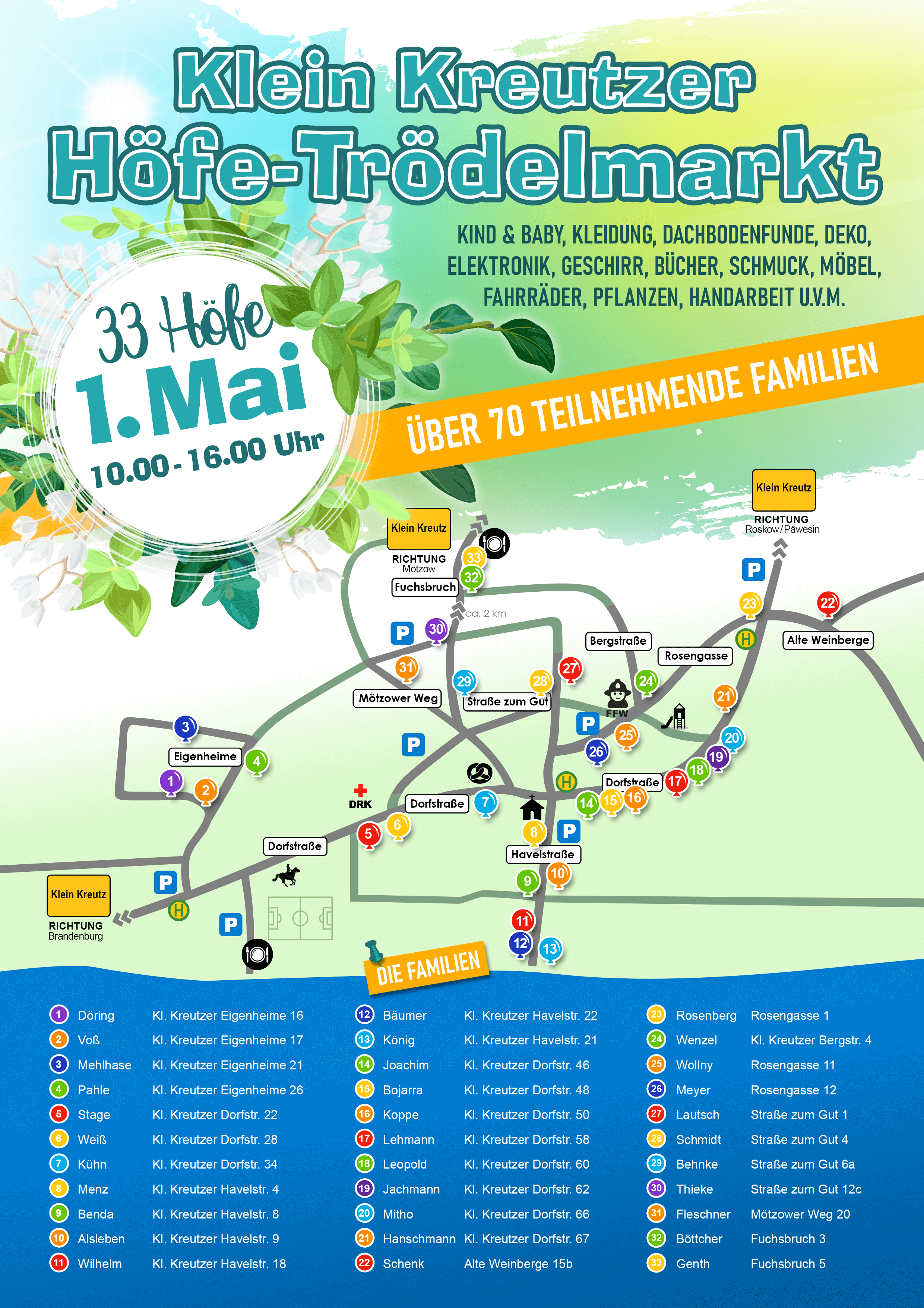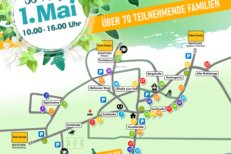 Höfetrödelmarkt mit 33 Höfen in Klein Kreutz, über 70 teilnehmende Familien.